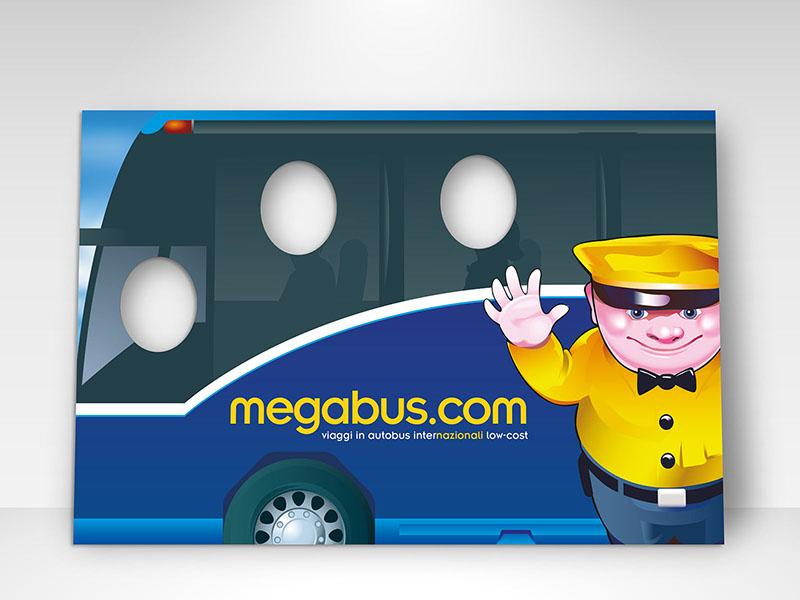 Backdrop promozionale fustellato Megabus. Cliente: BPress